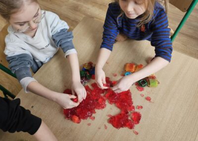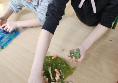 Dzieci mają okazję poznawać świat poprzez dotyk, dźwięk, zapach, smak i ruch, bawiąc się fakturami, kolorami i naturalnymi materiałami. Malowanie palcami, chodzenie po sensorycznych ścieżkach, zabawy w piasku czy masach plastycznych – to tylko część aktywności, które rozwijają wyobraźnię, motorykę i koncentrację.